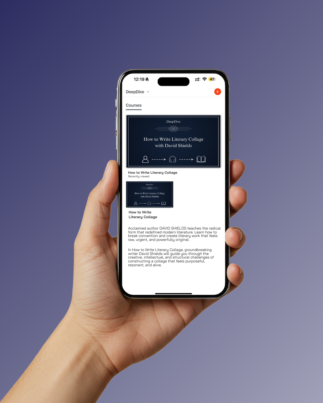 - Taught by the leading voice in the field. David Shields is not just a practitioner—he’s one of the most influential innovators of collage writing alive today, with decades of experience shaping the genre.